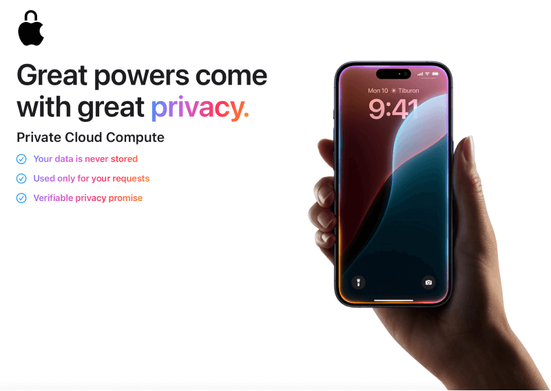 Apple Intelligence 在 AI 領域設定了新的隱私標準。首先,它擁有在設備上完全運行的小模型,以本地處理請求。當更復雜的任務需要云處理時,它們有一個新的私有云計算功能,同時確保用戶的數據不會被保留或暴露。