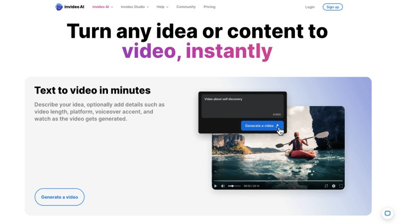 - 文本到視頻的轉(zhuǎn)換:InVideo AI的核心功能之一是將文本內(nèi)容轉(zhuǎn)換成視頻。用戶只需輸入或上傳腳本,AI將根據(jù)內(nèi)容自動(dòng)選擇合適的視覺(jué)元素和布局。
