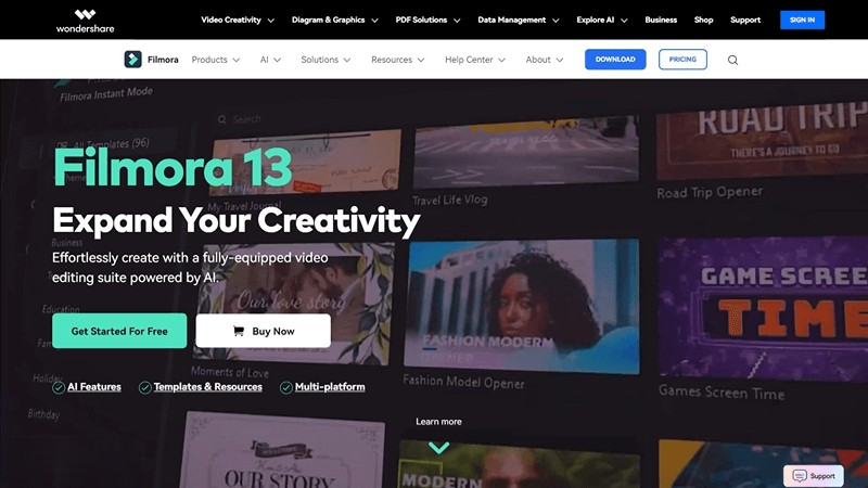 Filmora是萬興科技推出的AI視頻編輯工具,Filmora提供了剪輯、合并、添加特效、轉場、文本和字幕編輯等功能,適合初學者和中級視頻編輯者使用。Filmora支持多軌編輯,內置大量音樂和音效資源,以及各種濾鏡和動畫效果。Filmora還具備一些高級功能,如顏色校正、音頻編輯和關鍵幀動畫,能滿足更專業的視頻制作需求。Filmora支持多種視頻格式,便于用戶導入和導出視頻項目,大家快來AI365導航!