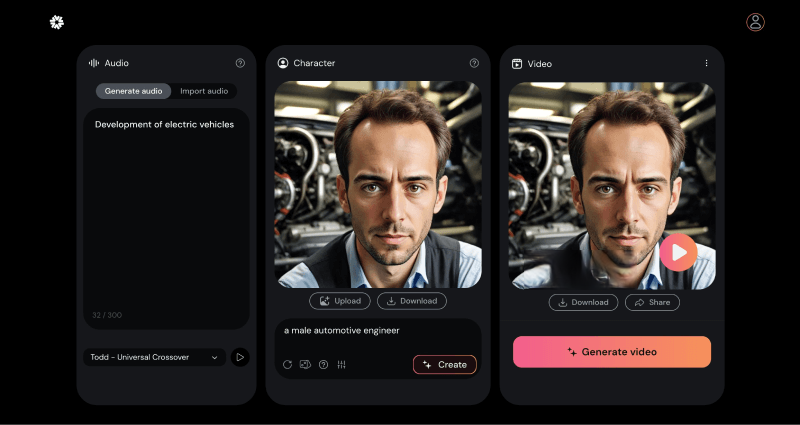 - 生成后的視頻可點(diǎn)擊下載或進(jìn)行分享