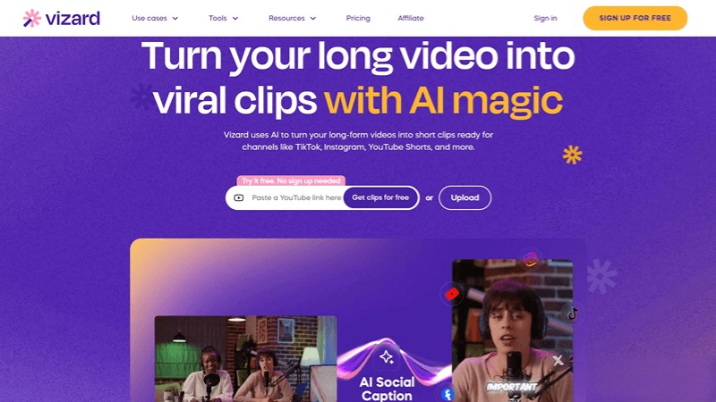 Vizard是將長(zhǎng)視頻轉(zhuǎn)換為社交短視頻片段的AI視頻編輯工具,支持TikTok、Instagram、YouTube Shorts等平臺(tái),Vizard服務(wù)超200萬(wàn)創(chuàng)作者和團(tuán)隊(duì)。Vizard提供團(tuán)隊(duì)協(xié)作空間,簡(jiǎn)化項(xiàng)目管理和分享流程。用戶上傳視頻后,AI自動(dòng)轉(zhuǎn)錄、剪輯并生成設(shè)計(jì)好的視頻片段,支持一鍵下載和分享,操作簡(jiǎn)便,無(wú)需注冊(cè)即可免費(fèi)試用,大家快來(lái)天天下載站下載吧!