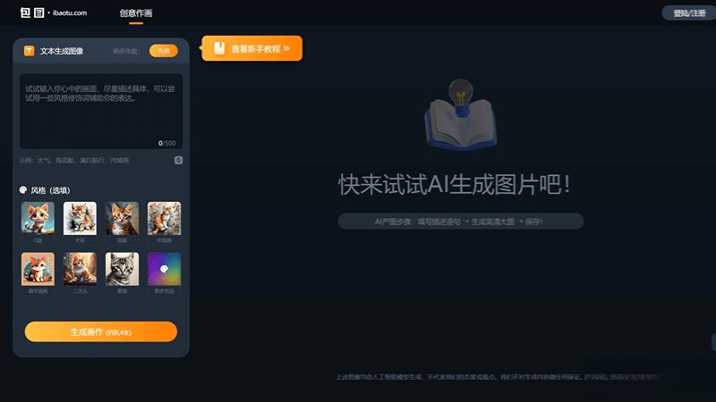 包圖AI文生圖是包圖網推出的一站式圖像、插畫生成工具。一鍵解決圖片生成及版權煩惱問題,讓你實現想象照進現實,辦公效率buff疊加!無需復雜的教程學習,傻瓜式文本輸入,一鍵生成高質高清圖片,你只需要提出指令,剩下的由AI來處理,操作簡單易上手,辦公小白必備利器,大家快來AI365導航!